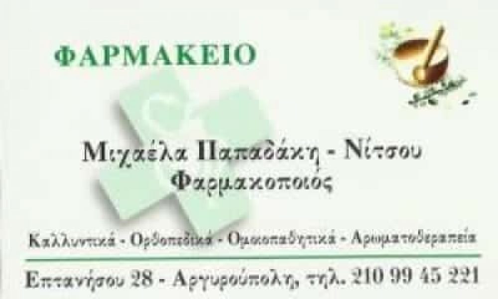 ΦΑΡΜΑΚΕΙΟ ΑΡΓΥΡΟΥΠΟΛΗ, ΚΑΛΛΥΝΤΙΚΑ ΑΡΓΥΡΟΥΠΟΛΗ, ΟΜΟΙΟΠΑΘΗΤΙΚΑ ΑΡΓΥΡΟΥΠΟΛΗ, ΑΡΩΜΑΤΟΘΕΡΑΠΕΙΑ ΑΡΓΥΡΟΥΠΟΛΗ, ΜΙΧΑΕΛΑ ΠΑΠΑΔΑΚΗ, ΦΑΡΜΑΚΕΙΑ ΑΡΓΥΡΟΥΠΟΛΗ, ΟΡΘΟΠΕΔΙΚΑ ΕΙΔΗ ΑΡΓΥΡΟΥΠΟΛΗ, ΒΙΤΑΜΙΝΕΣ ΑΡΓΥΡΟΥΠΟΛΗ ΑΤΤΙΚΗ