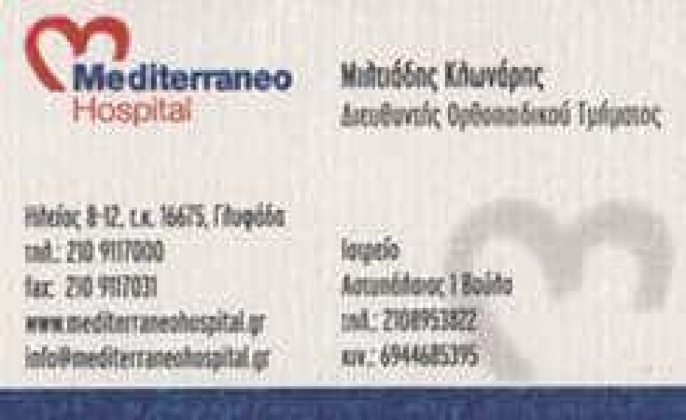 ΔΙΕΥΘΥΝΤΗΣ ΟΡΘΟΠΑΙΔΙΚΟΥ ΤΜΗΜΑΤΟΣ “MEDITERRANEO HOSPITAL”