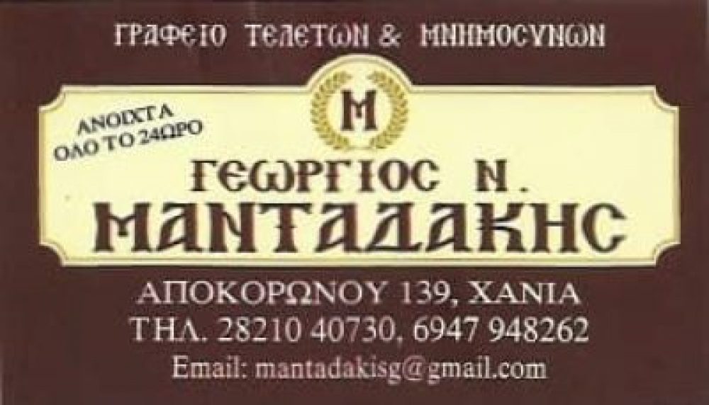 ΓΡΑΦΕΙΑ ΤΕΛΕΤΩΝ ΣΤΑ ΧΑΝΙΑ , ΚΗΔΕΙΕΣ ΣΤΑ ΧΑΝΙΑ , ΤΕΛΕΤΕΣ ΣΤΑ ΧΑΝΙΑ , ΜΝΗΜΟΣΥΝΑ ΣΤΑ ΧΑΝΙΑ , ΕΠΑΝΑΠΑΤΡΙΣΜΟΙ ΣΤΑ ΧΑΝΙΑ ,ΓΡΑΦΕΙΟ ΤΕΛΕΤΩΝ ΧΑΝΙΑ