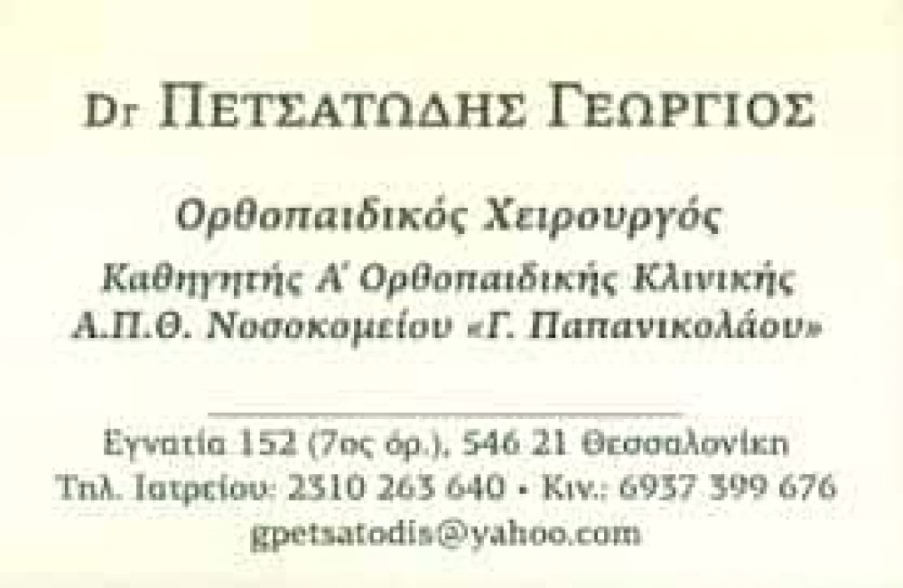 ΧΕΙΡΟΥΡΓΟΣ ΟΡΘΟΠΕΔΙΚΟΣ ΘΕΣΣΑΛΟΝΙΚΗ, ΧΕΙΡΟΥΡΓΟΙ ΟΡΘΟΠΕΔΙΚΟΙ ΘΕΣΣΑΛΟΝΙΚΗ, ΠΕΤΣΑΤΩΔΗΣ ΓΕΩΡΓΙΟΣ ΘΕΣΣΑΛΟΝΙΚΗ,ΥΓΕΙΑ ΘΕΣΣΑΛΟΝΙΚΗ